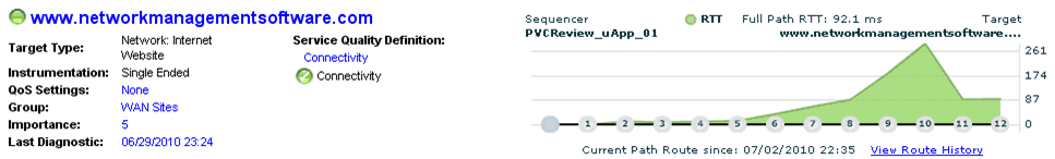 Service Quality Definitions (SQD) can be defined for each path. SQD’s identify conditions that will trigger alerts. As an example in the screenshot below, identifying a device as a File Server will cause alerts to trigger if connectivity is lost, or if latency rises above 50ms. There are a number of pre-defined SQD’s, or you can create your own.