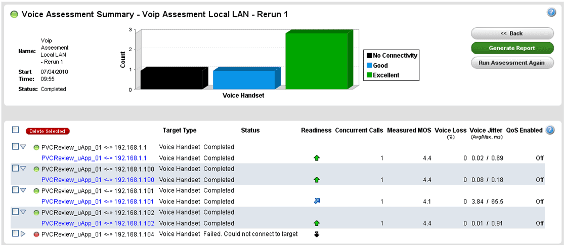 PathView Cloud is the perfect tool for planning a VOIP rollout. It can perform a voice readiness assessment which will test the network with simulated VOIP calls. It has options to simulate the number of calls, preferred voice codec, and handset or server manufacturer. The report provides a measured MOS score, and a dashboard-style readiness report.There is also an option to run a data assessment test, which is useful for testing new services to ensure they are performing properly.